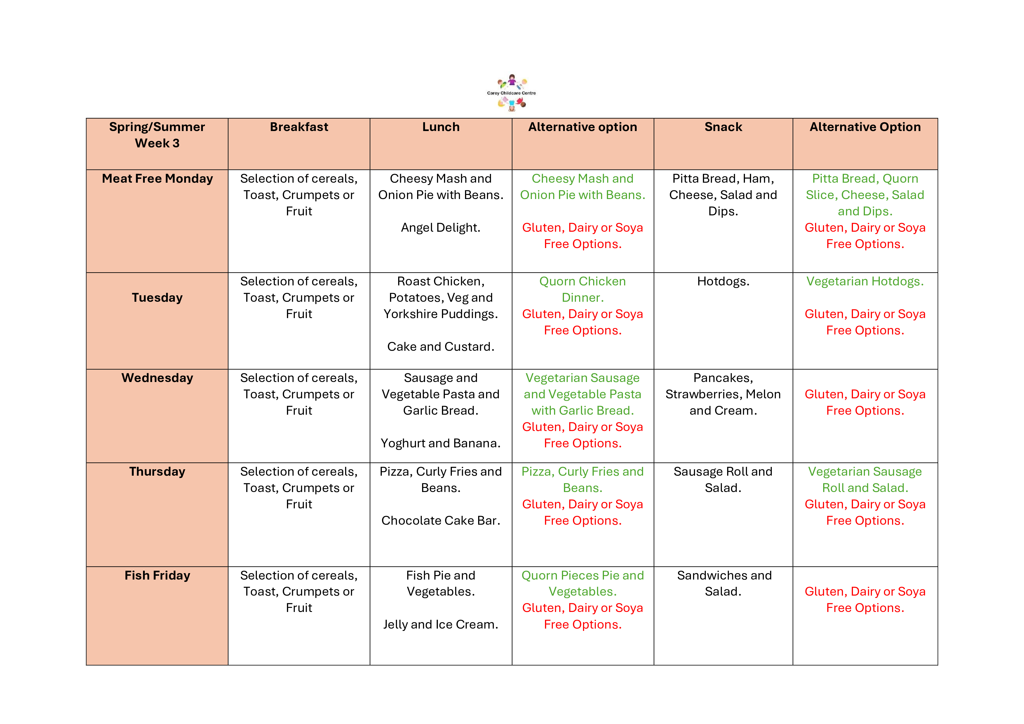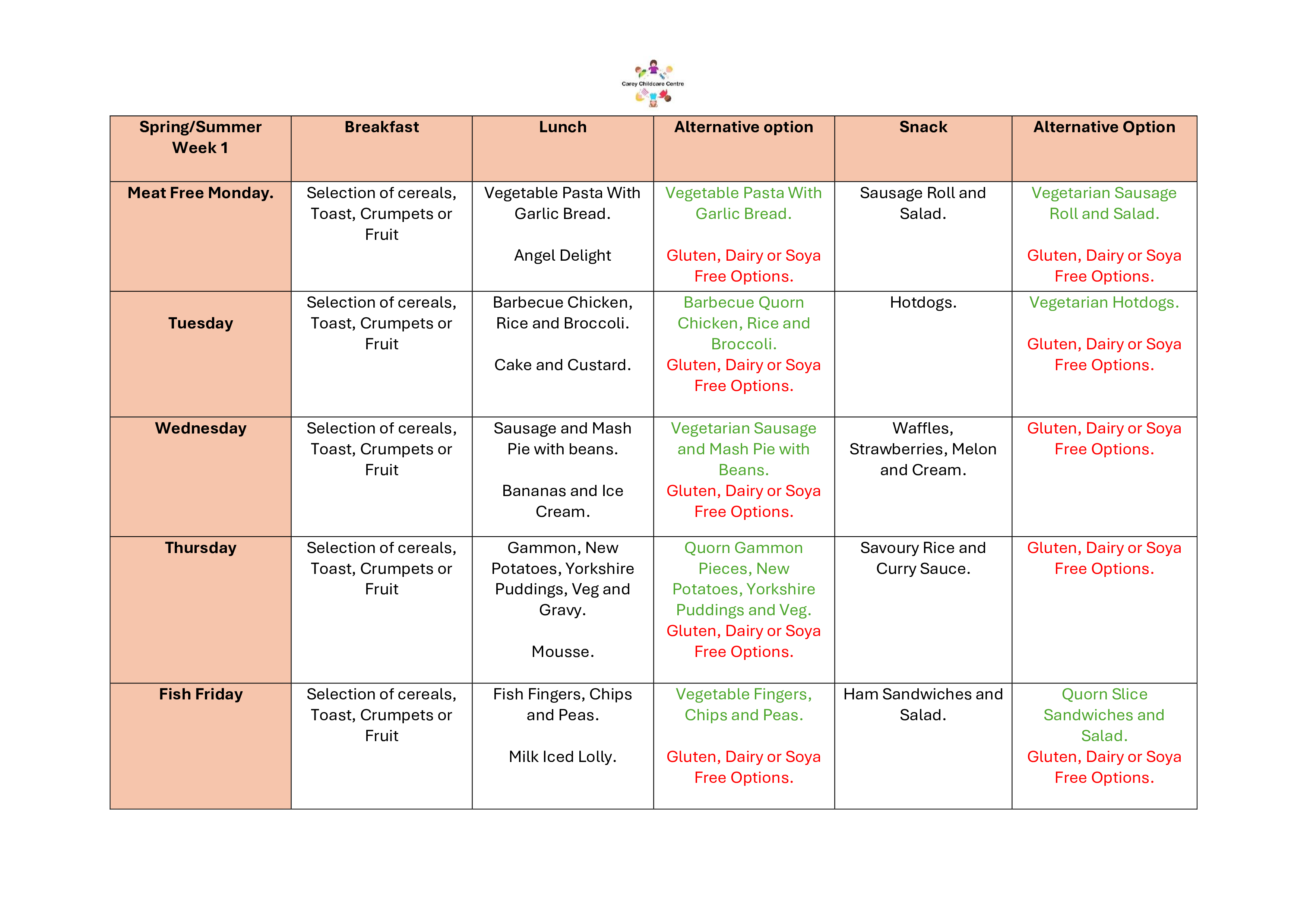 ***Fresh Drinking water provided throughout the day and with meals.***